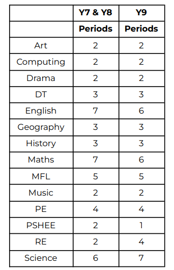 Overview of KS3 Curriculum time by subject :